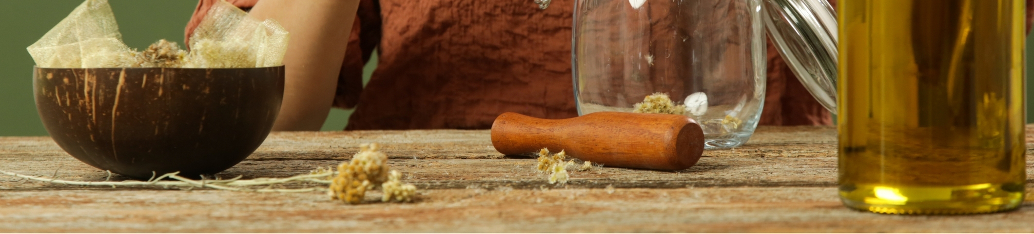 Pour effectuer une macération, il faut compter en moyenne : 1/3 de plantes pour 2/3 de base huileuse (huile d’olive, jojoba, sésame..), laisser macérer environ 3 semaines, puis filtrer.