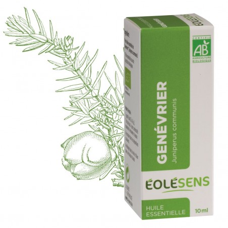 Nom botanique :Juniperus communis Origine : France Partie distillée : Rameaux et baies Procédé d’extraction : Distillation à la vapeur d’eau Famille botanique : Cupressacées Chémotype : Alpha-pinène, Sabinène