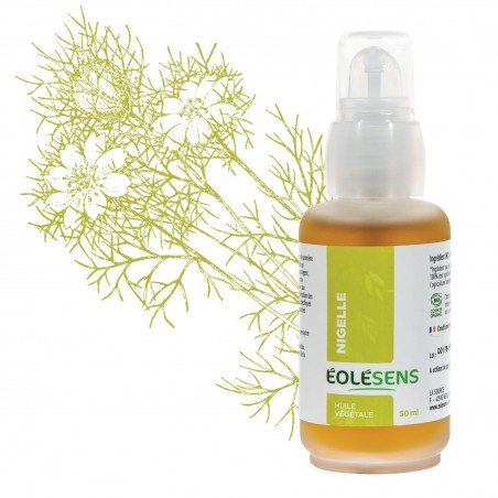 L'huile de Nigelle, est une huile à l’odeur épicée. Elle apaise, répare, nourrit et régénère. Elle est ainsi utile pour le soin des peaux irritées. Elle contribue à purifier les peaux à tendance acnéique. Elle lutte contre les signes du vieillissement cutané.