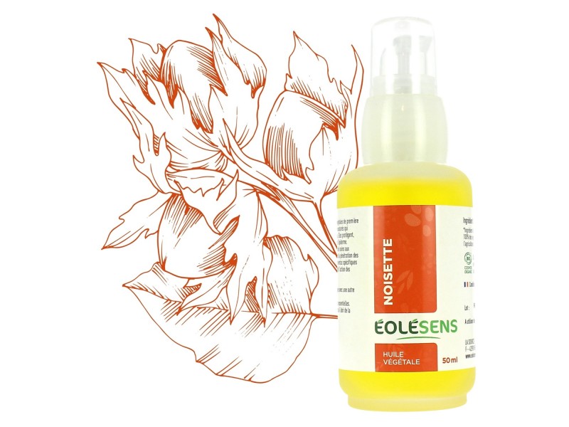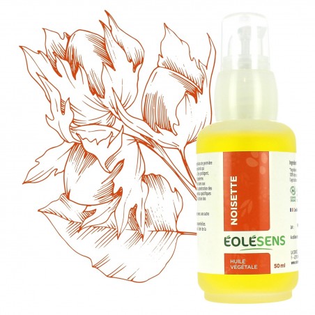 L'huile végétale biologique de noisette répare en favorisant la régénération de la peau, protège et préviens la déshydratation de la peau. De plus, elle adoucit et apporte ainsi un toucher soyeux à la peau. Elle est considérée comme « non comédogène », c’est-à-dire qu’elle équilibre naturellement la production de sébum pour les peaux grasses. L’huile de noisette possède un fort pouvoir pénétrant et permet d’assouplir la peau sans laisser de film gras.
