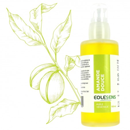 L'huile végétale biologique d’amande douce est connue pour son action apaisante et adoucissante pour les peaux délicates, sensibles et sèches. Cette huile végétale est très polyvalente. Elle s’utilise seule ou comme base de dilution pour les huiles essentielles pour les peaux délicates et fragiles, pour les bébés notamment. Elle contient de la vitamine E et se conserve bien. Elle peut démaquiller et servir de base comme crème de nuit. L’huile d’amande douce contribue à diminuer les crevasses et les démangeaisons. Elle s'utilise pour préparer des soins nourrissants pour tous types de peaux, en particulier les peaux tiraillées et inconfortables.